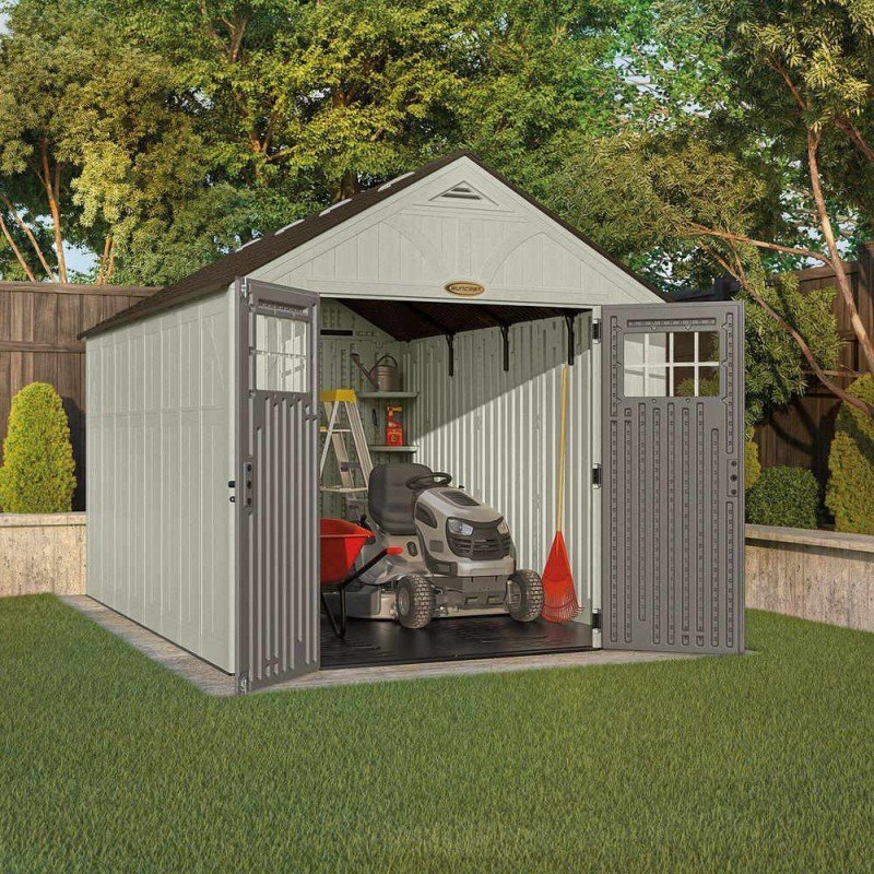 En plus d’être résistant, l’abri en PE Suncast est particulièrement joli. La granularité du polyéthylène lui donne un aspect bois et les tons utilisés sont à la mode. Le gris clair et le gris taupé s’intègrent parfaitement dans des jardins contemporains.