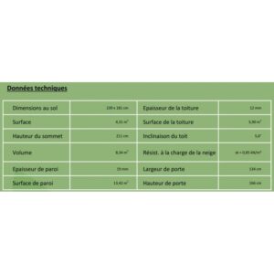 – Toiture : Toit à 2 pentes pour faciliter l’écoulement de l’eau de pluie.