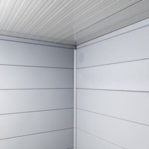 L’abri Telluria Eleganto Lounge 2424 comprend une pièce verrouillable de 5,7m² et un auvent semi-ouvert de 6,8m² en partie gauche. La porte est dotée d’une ouverture vitrée en plexiglas de 4mm et possède une serrure à cylindre avec un jeu de 2 clés. Réalisé en acier galvanisé à chaud et recouvert d’une couche de zinc de 275g/m², cet abri bénéficie d’une garantie de 20 ans.