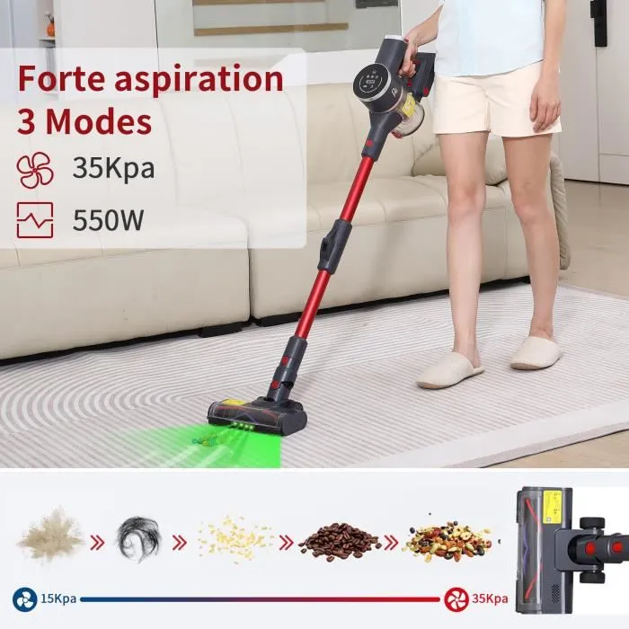 ✔ Puissance 550 W & Aspiration 35KPa : Nettoyage rapide et en profondeur sur sols durs et moquettes.