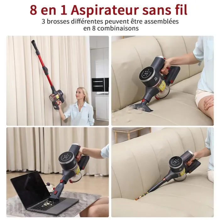 ✔ Polyvalence 8 en 1 : Balai, aspirateur à main et multiples accessoires pour sols, meubles et coins difficiles.