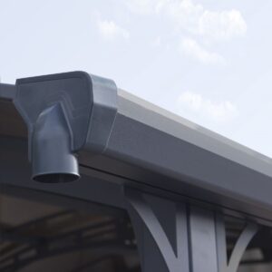 Canopia by PALRAM carport avec une armature en aluminium peint de couleur grise – avec connecteur au sol en acier galvanisé -panneaux en polycarbonate semi translucide ultra résistant de haute qualité – resistance de charge 150kg/m² – gouttière incluse – facile à monter.