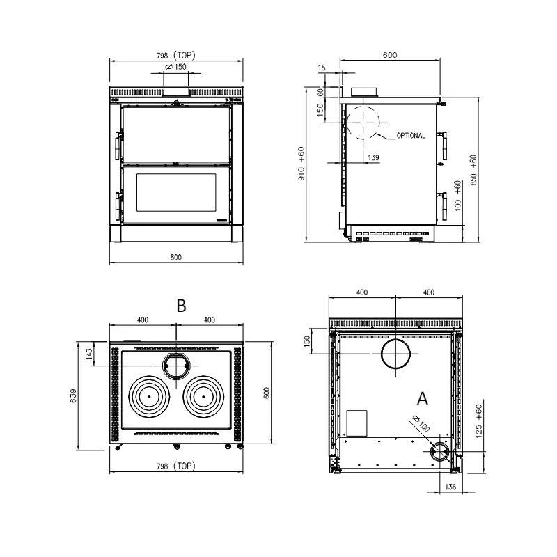 Schéma de cuisinières à bois encastrable Verona XXL