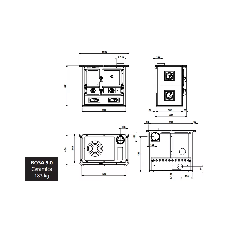 Schéma cuisinière à bois Rosa 5.0 Ceramica