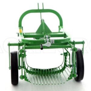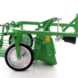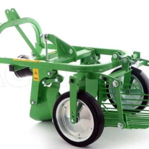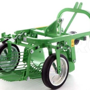 La machine est constituée d’un soc vibrant avec profondeur d’excavation réglable qui transfère les pommes de terre et la terre sur la trémie vibrante en tamisant les pommes de terre du sol. La profondeur d’excavation est réglée par les roues de support arrière.