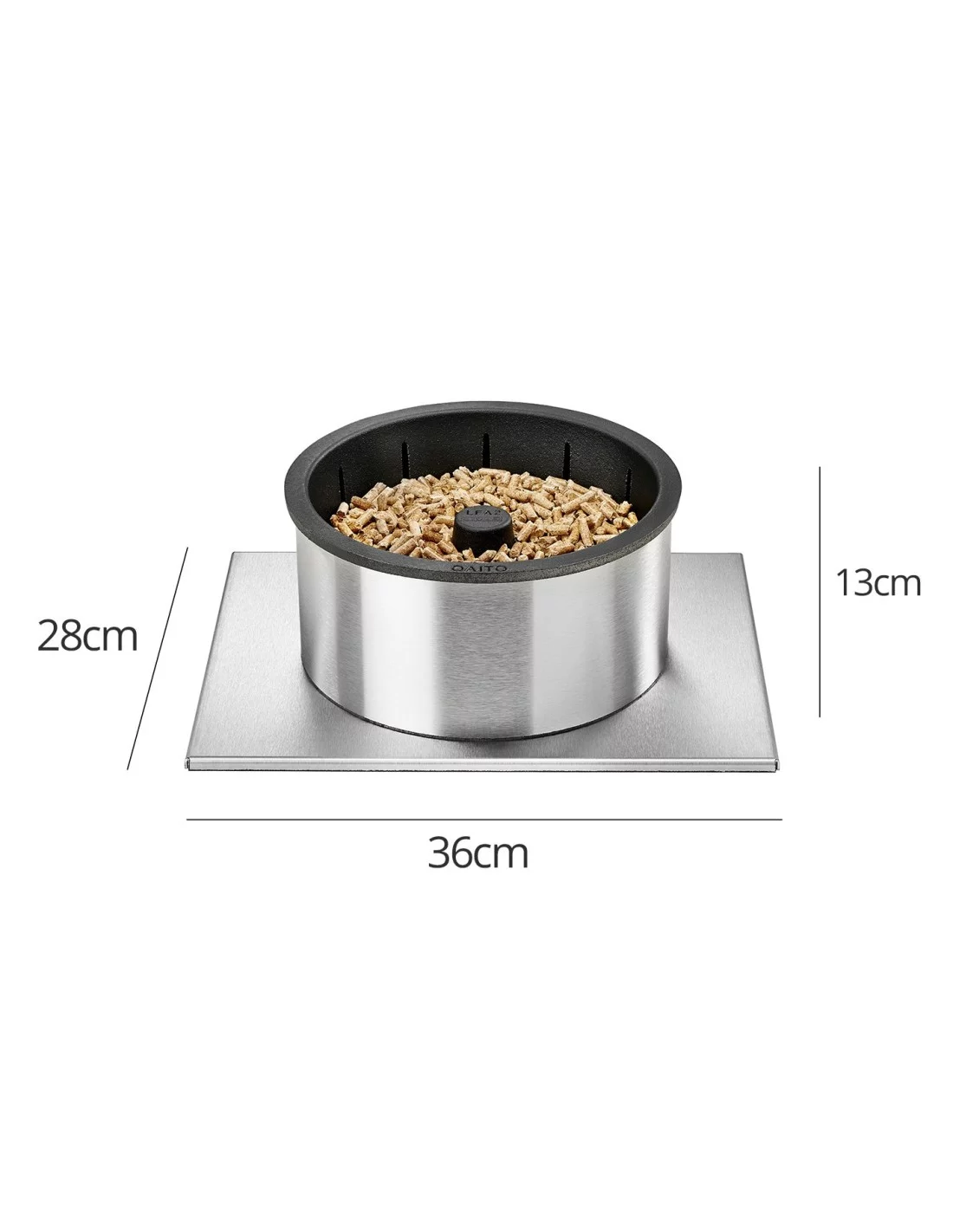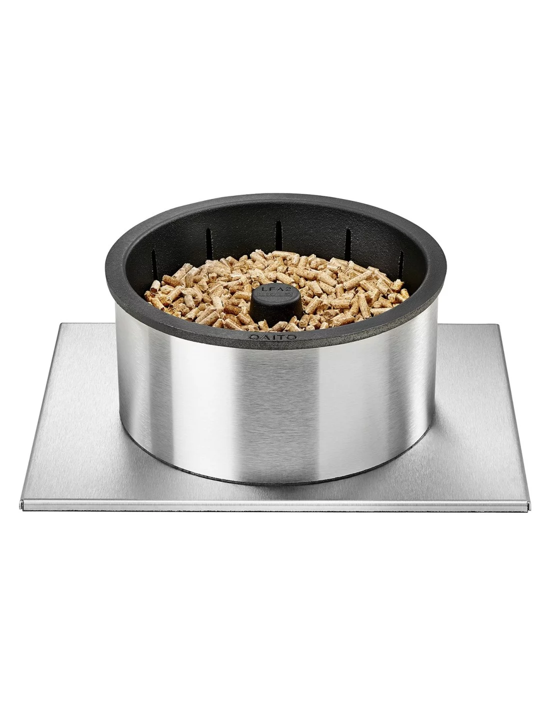 Le Qaïto Q20 peux contenir 1,7kg de pellets et dégage une puissance de 10kW (puissance calorifique selon à la quantité de pellets). Entièrement fabriqué en France comme l’ensemble de nos rangements à granulés de bois, le qaïto pèse 6,4Kg. Une base est en inox plié surmonté d’une chemisé usinée par roulage et à l’intérieur de laquelle est placé le brûleur en fonte.