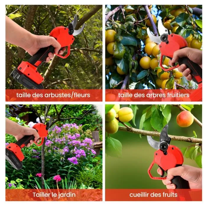 Les sécateurs manuels ont du mal à faire le travail à mesure que les branches deviennent plus épaisses. Ce sécateur électrique sans fil permet de couper facilement et rapidement des branches jusqu’à 40 mm de diamètre sans les abîmer. Les engrenages sont étroitement maillés et ne se desserreront pas pendant longtemps.