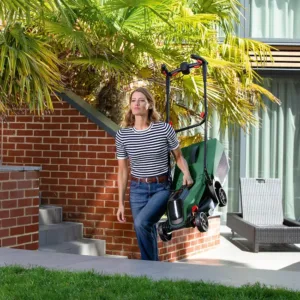 Grâce aux poignées ErgoFlex et aux guide-herbes intégrés, la tonte est confortable, précise et agréable même le long des bordures et murs. Le bac de ramassage de 31 L et la possibilité de réglage de la hauteur sur 3 positions (30–60 mm) garantissent un résultat impeccable.